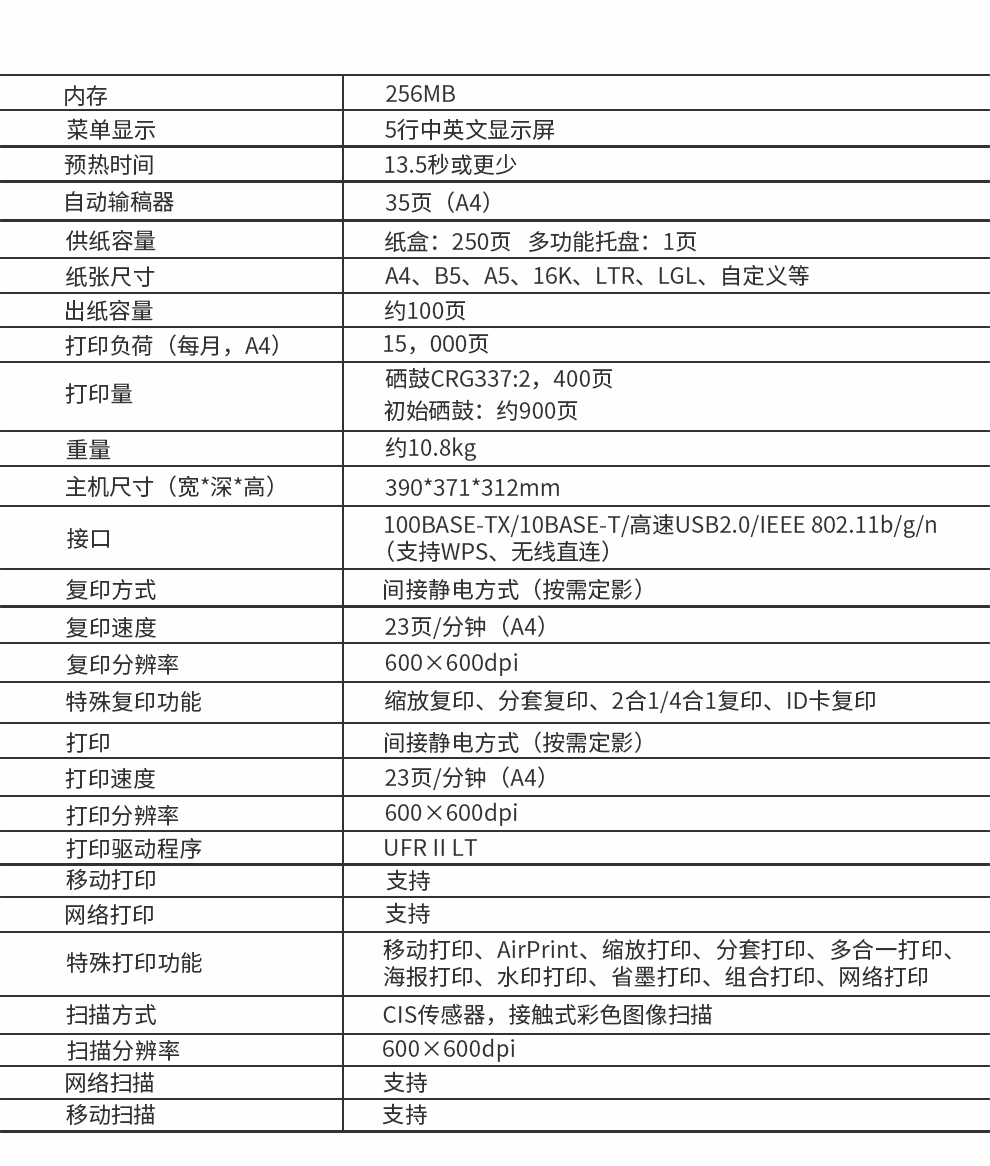佳能MF232W/产品详情: